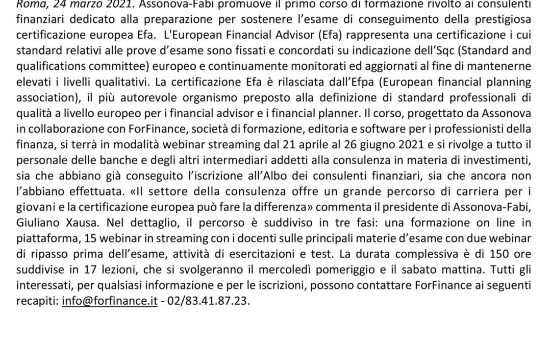 • CONSULENZA FINANZIARIA: FORMAZIONE QUALIFICATA PER UNA PROFESSIONE SEMPRE PIÙ CENTRALE